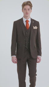 Pánský hnědý třídílný oblek s dvouřadou vestou