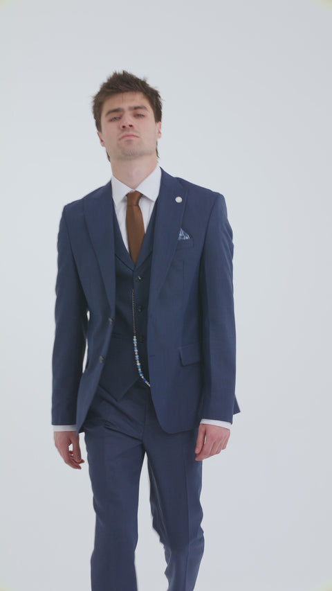 Pánský třídílný oblek James v tmavě modré barvě, padnoucí střih