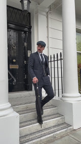 Pánský třídílný oblek z vlněného tvídu, tmavě modrý, hnědý, kostkovaný, Gatsby z 20. let