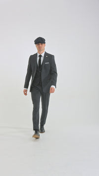 Pánský třídílný tvídový oblek s motivem rybí kosti v tmavě šedé barvě - STZ11